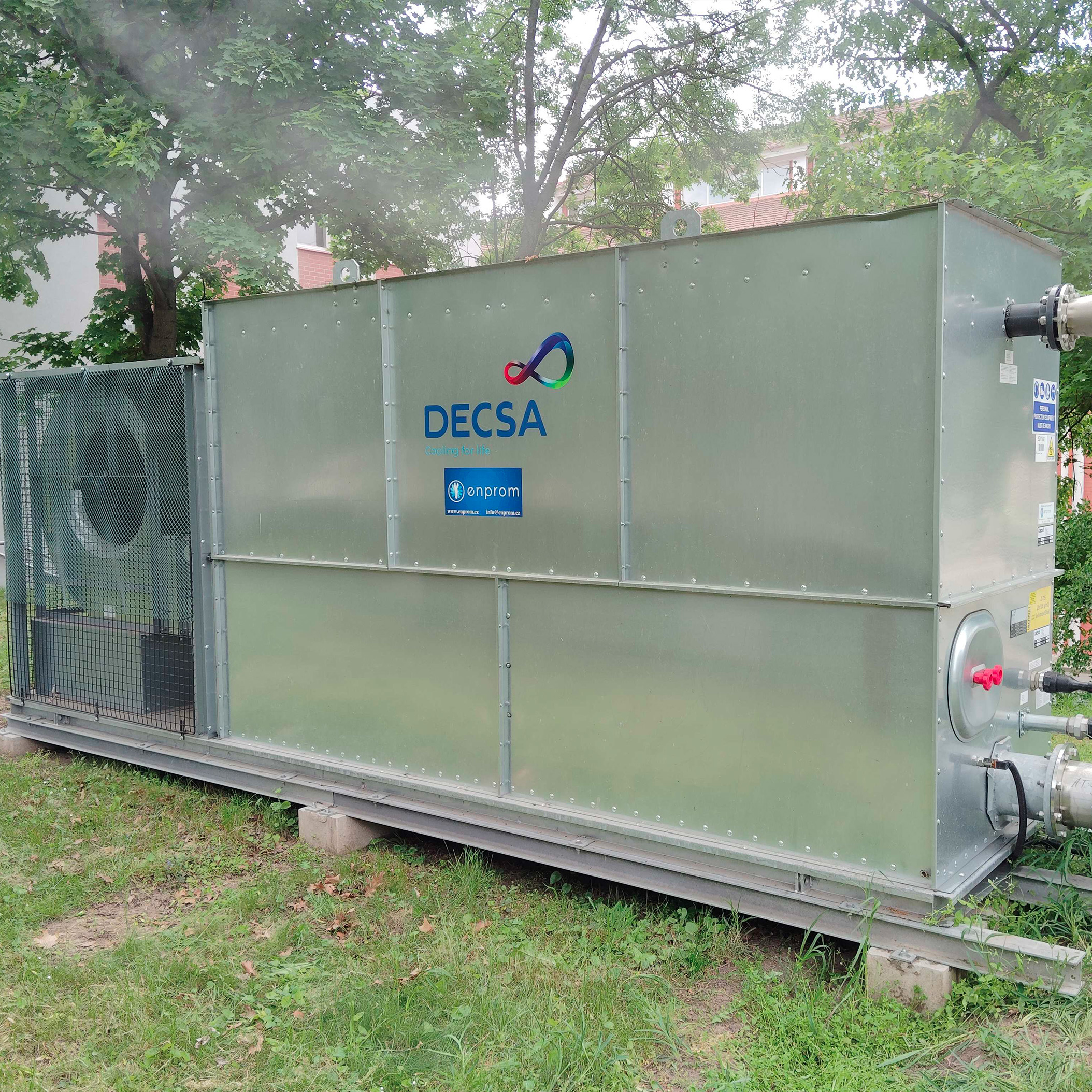 - Charakteristika: Voda je čerpána okruhem a teplo je odváděno především pomocí otevřené odpařovací chladicí věže. Voda v okruhu je v přímém kontaktu s atmosférou.